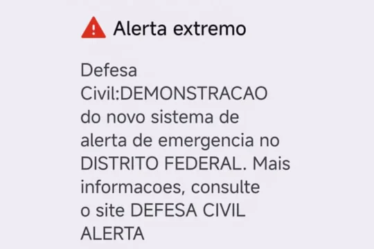 Leia maisA Defesa Civil nacional enviou neste sábado (27) uma mensagem para o celular dos moradores do Distrito Federal e de mais 12 municípios de Goiás, Mato Grosso do Sul e...